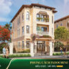 - Tầng trệt là khu vực tiếp khách và sinh hoạt chính, bố trí liền mạch giữa phòng khách – phòng ăn – bếp. Mỗi căn đều sở hữu mặt thoáng tối đa, từ 3 đến 4 mặt sân vườn, tạo không gian riêng tư và gần gũi thiên nhiên.